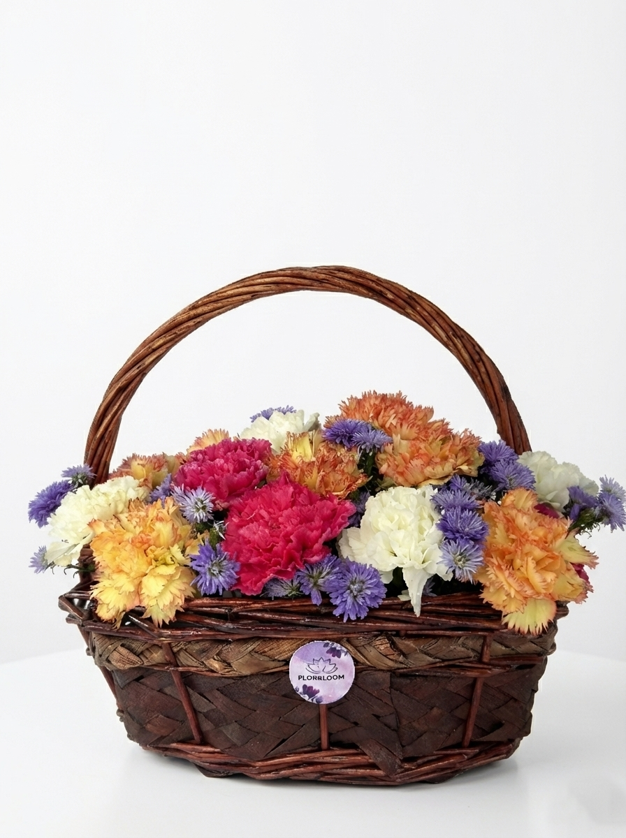 Deliver a bundle of pure happiness with our 'Carnival Carnation Basket'.