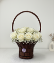 Presented in a hand-woven rustic basket, this bouquet exudes an aura of innocence, grace, and divine peace. It is the perfect choice for welcoming a new baby, expressing sincere sympathy, or celebrating a wedding with classic elegance.