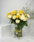 Radiate positivity and grace with this massive gathering of 40 fresh roses. We have paired 20 vibrant yellow roses (symbolizing joy and friendship) with 20 pristine white roses (symbolizing peace and sincerity).